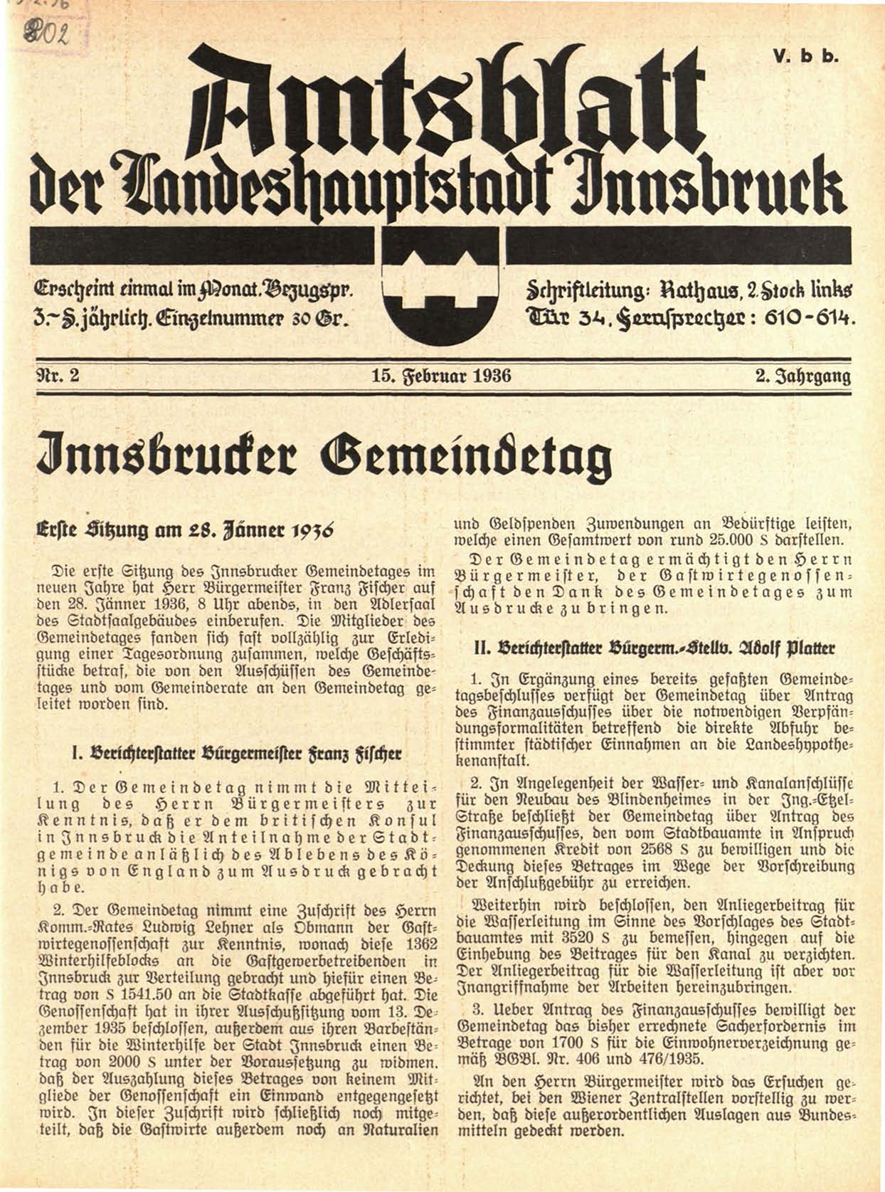 Innsbruck Zur Verteilung gebracht und hiefür einen Be- Der Anliegerbeitrag für die Wasserleitung ist aber vor