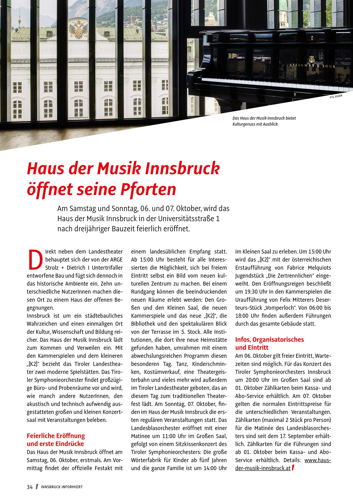 ab 01. Oktober beim Kassa- und AboService erhältlich. Details: www.hausder-musik-innsbruck.at