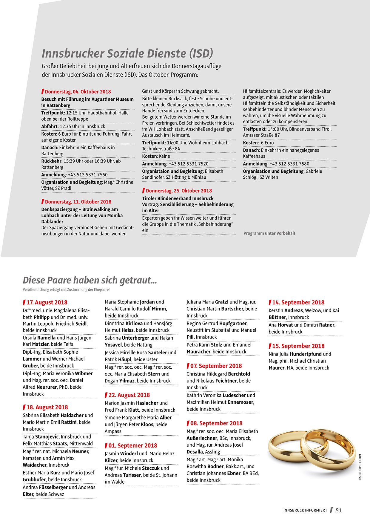 der Innsbrucker Sozialen Dienste (ISD). Das Oktober-Programm: