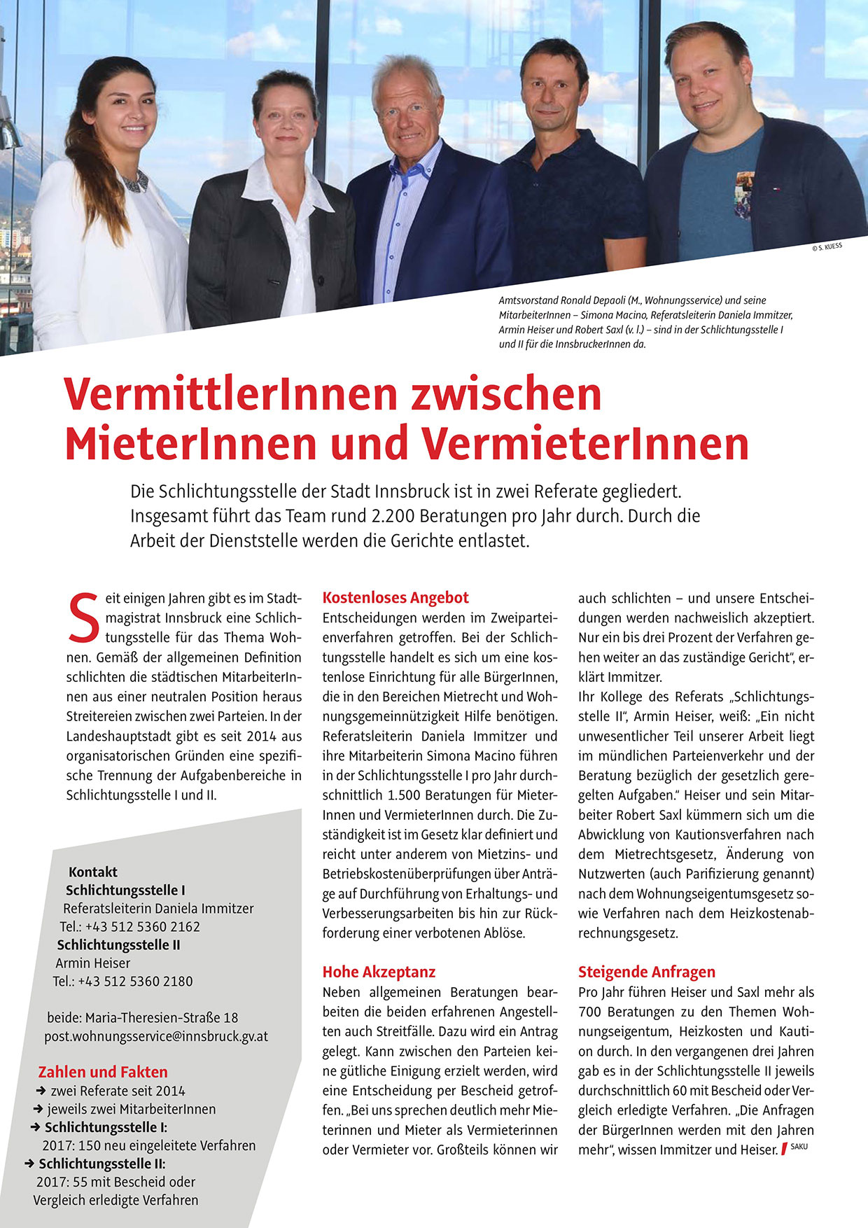 eit einigen Jahren gibt es im Stadtmagistrat Innsbruck eine Schlichtungsstelle für das Thema Wohnen. Gemäß der allgemeinen Definition