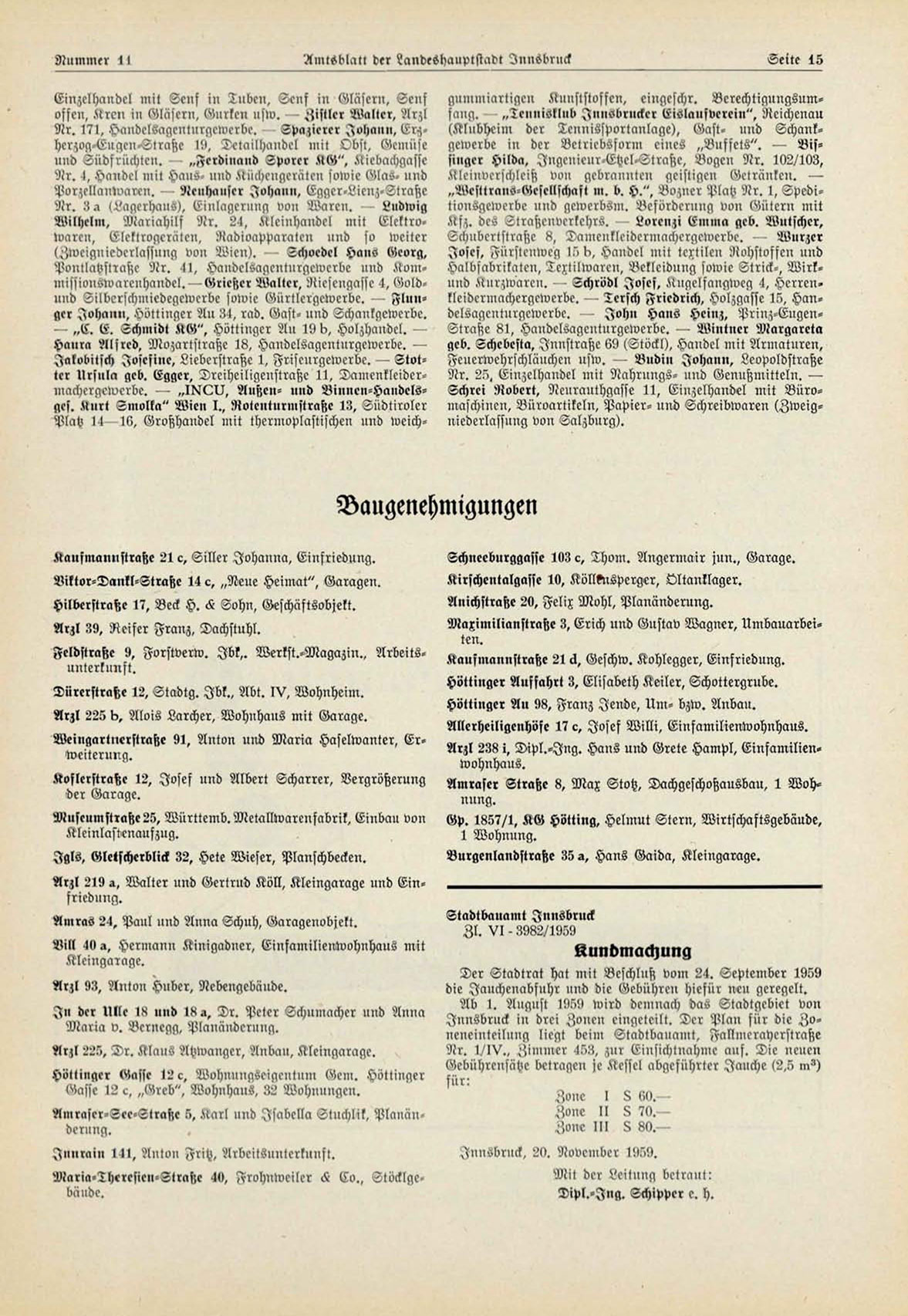 Pontlatzslraßc Nr. I I , Haudel^alienlurgelverbe nnd 5iommissionswareuhandel. -Gricßcr Walter, ^iieseilgassc ^l, Goldnud SilbcrschmiedegeN"erbe sowie Gürllergelucrbc. ^ ^lnnger Johan», Höttiuger An 3-1, rad. Gast- nud Schaulgcwcrbe.