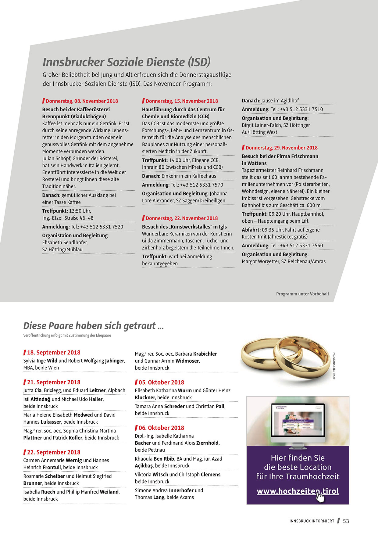 der Innsbrucker Sozialen Dienste (ISD). Das November-Programm: