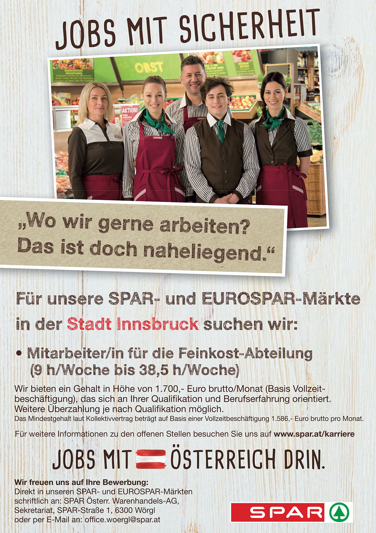 Für weitere Informationen zu den offenen Stellen besuchen Sie uns auf www.spar.at/karriere