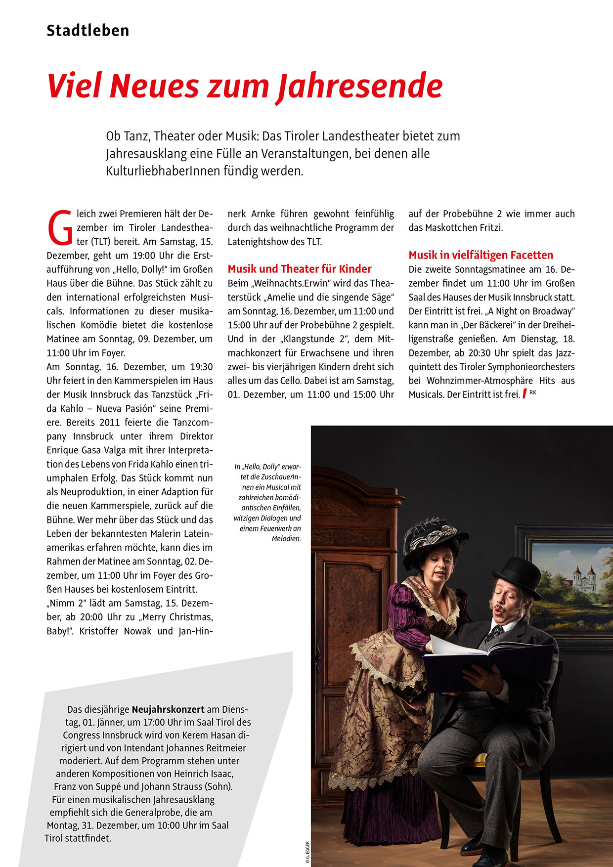 leich zwei Premieren hält der Dezember im Tiroler Landestheater (TLT) bereit. Am Samstag, 15.