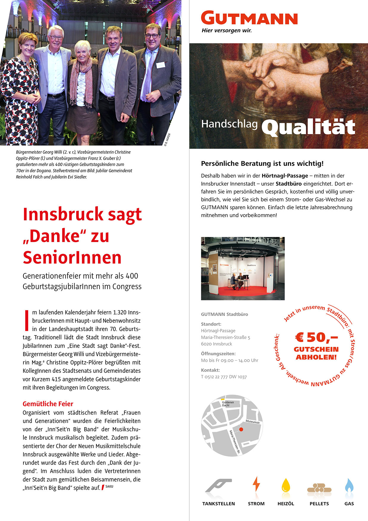 in der Landeshauptstadt ihren 70. Geburtstag. Traditionell lädt die Stadt Innsbruck diese