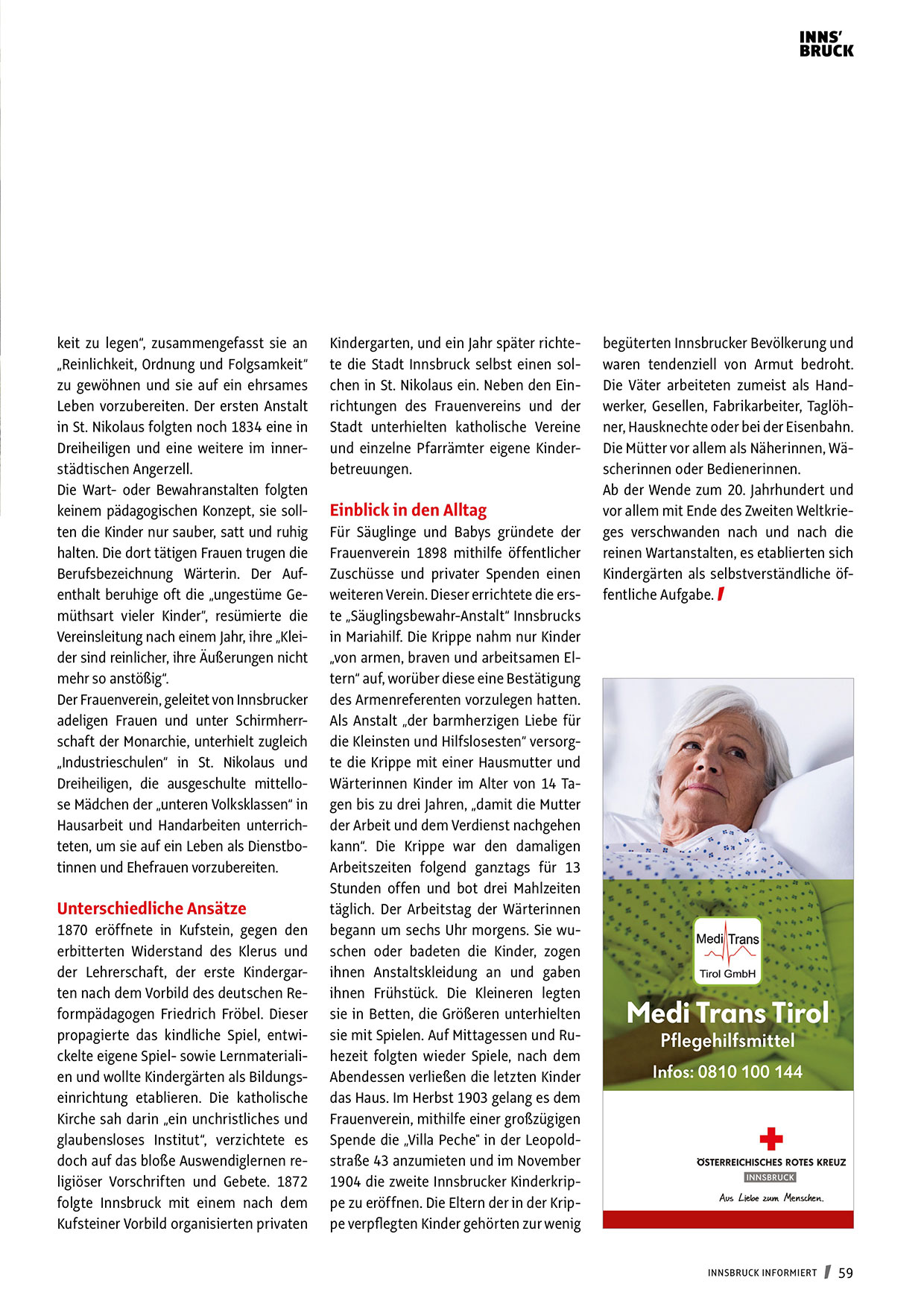 weiteren Verein. Dieser errichtete die erste „Säuglingsbewahr-Anstalt“ Innsbrucks