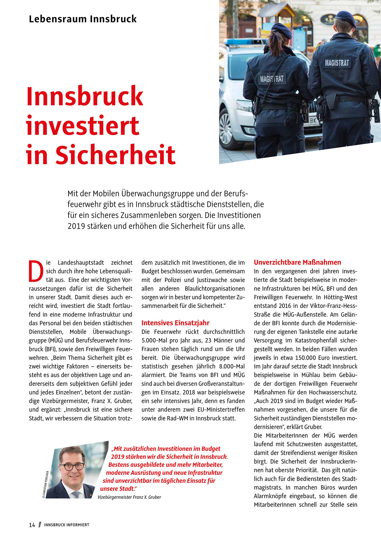 Dienststellen, Mobile Überwachungsgruppe (MÜG) und Berufsfeuerwehr Innsbruck (BFI), sowie den Freiwilligen Feuerwehren. „Beim Thema Sicherheit gibt es