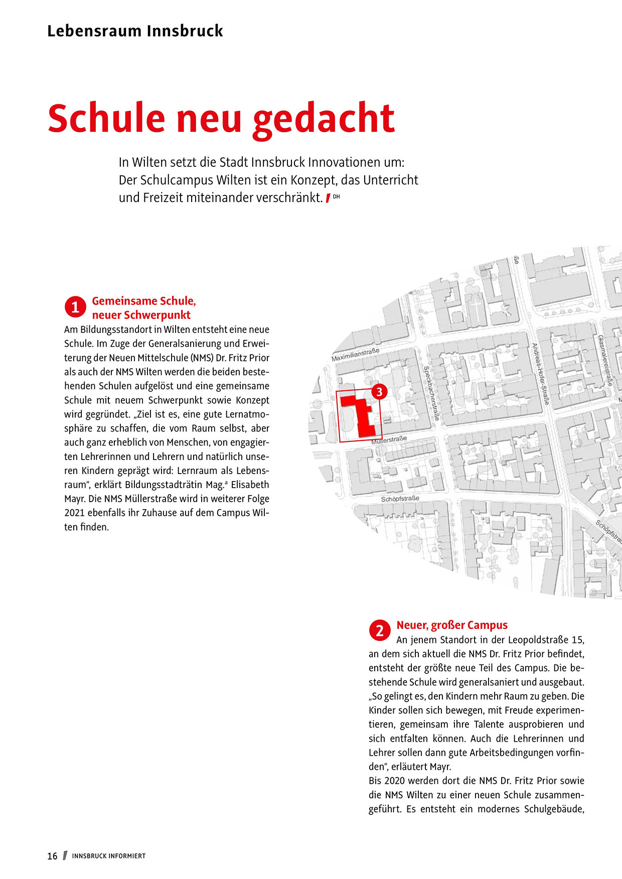 die NMS Wilten zu einer neuen Schule zusammengeführt. Es entsteht ein modernes Schulgebäude,