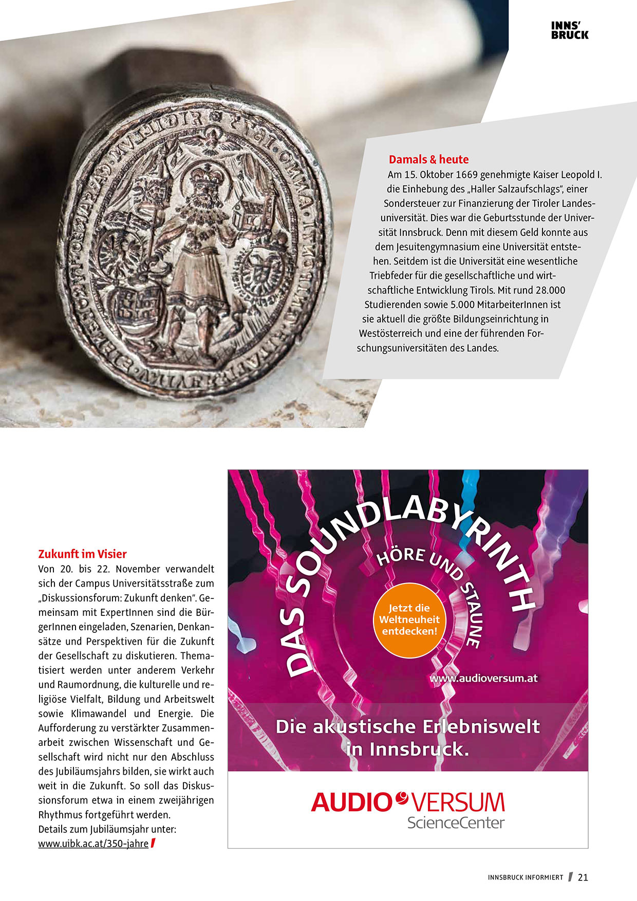 universität. Dies war die Geburtsstunde der Universität Innsbruck. Denn mit diesem Geld konnte aus