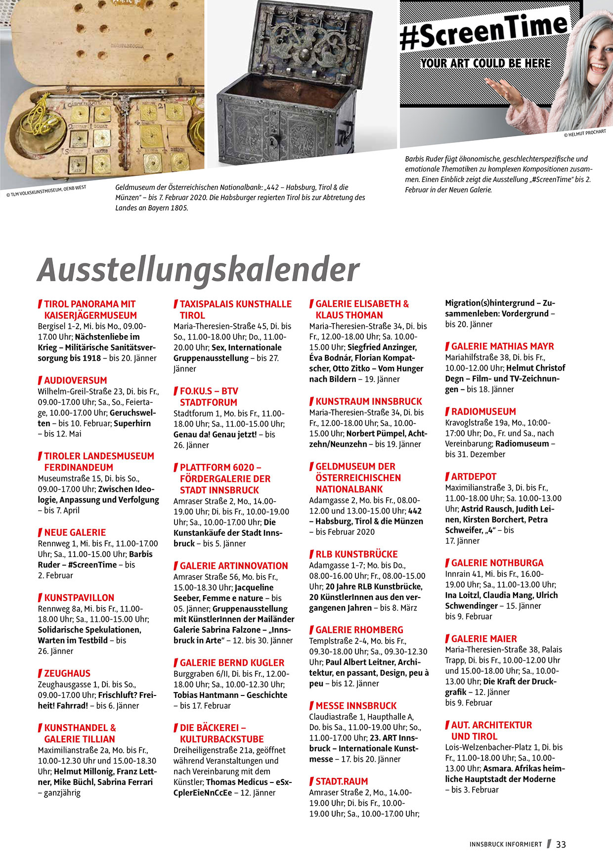 Innrain 41, Mi. bis Fr., 16.0019.00 Uhr; Sa., 11.00-13.00 Uhr;