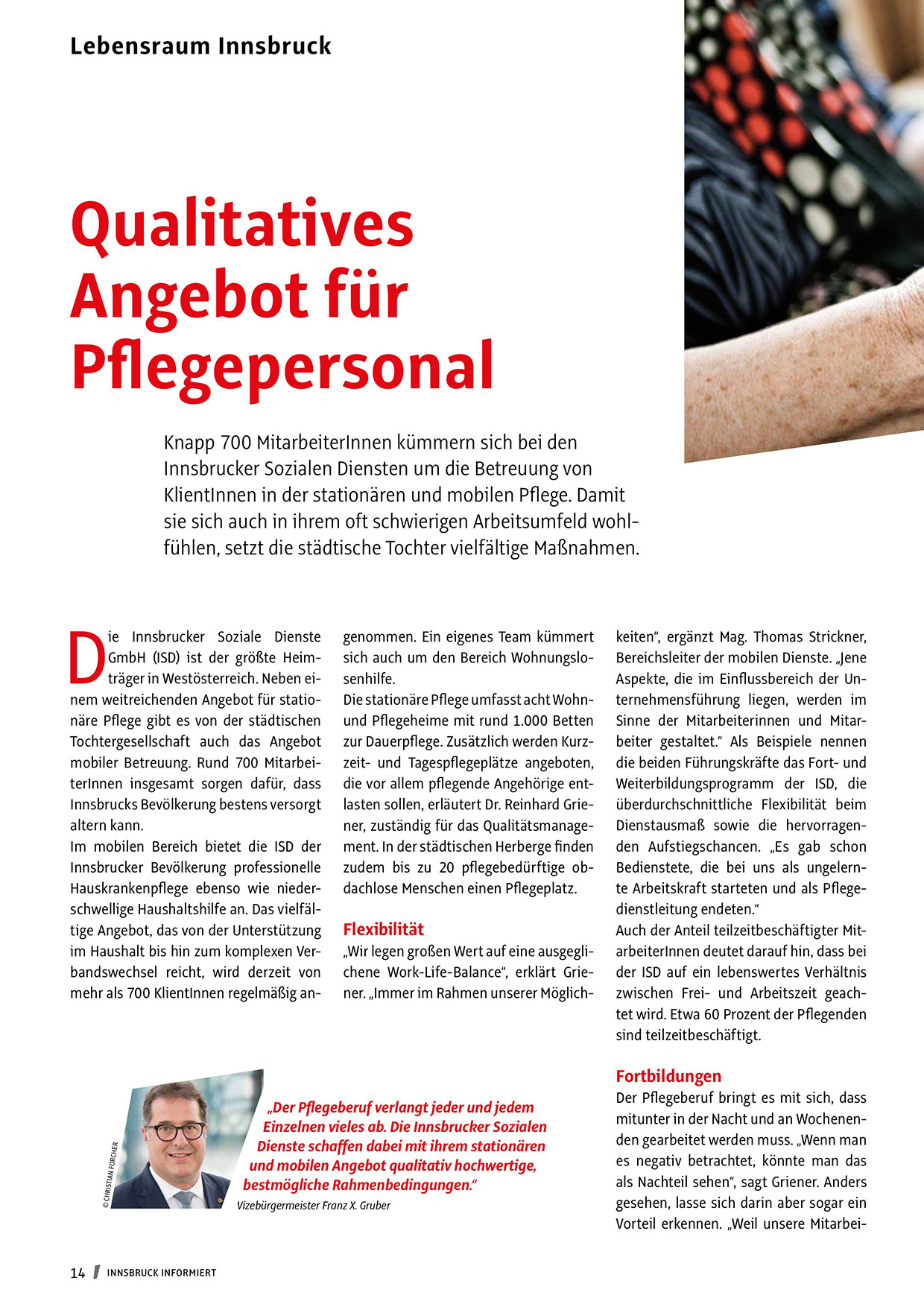 GmbH (ISD) ist der größte Heimträger in Westösterreich. Neben einem weitreichenden Angebot für stationäre Pflege gibt es von der städtischen