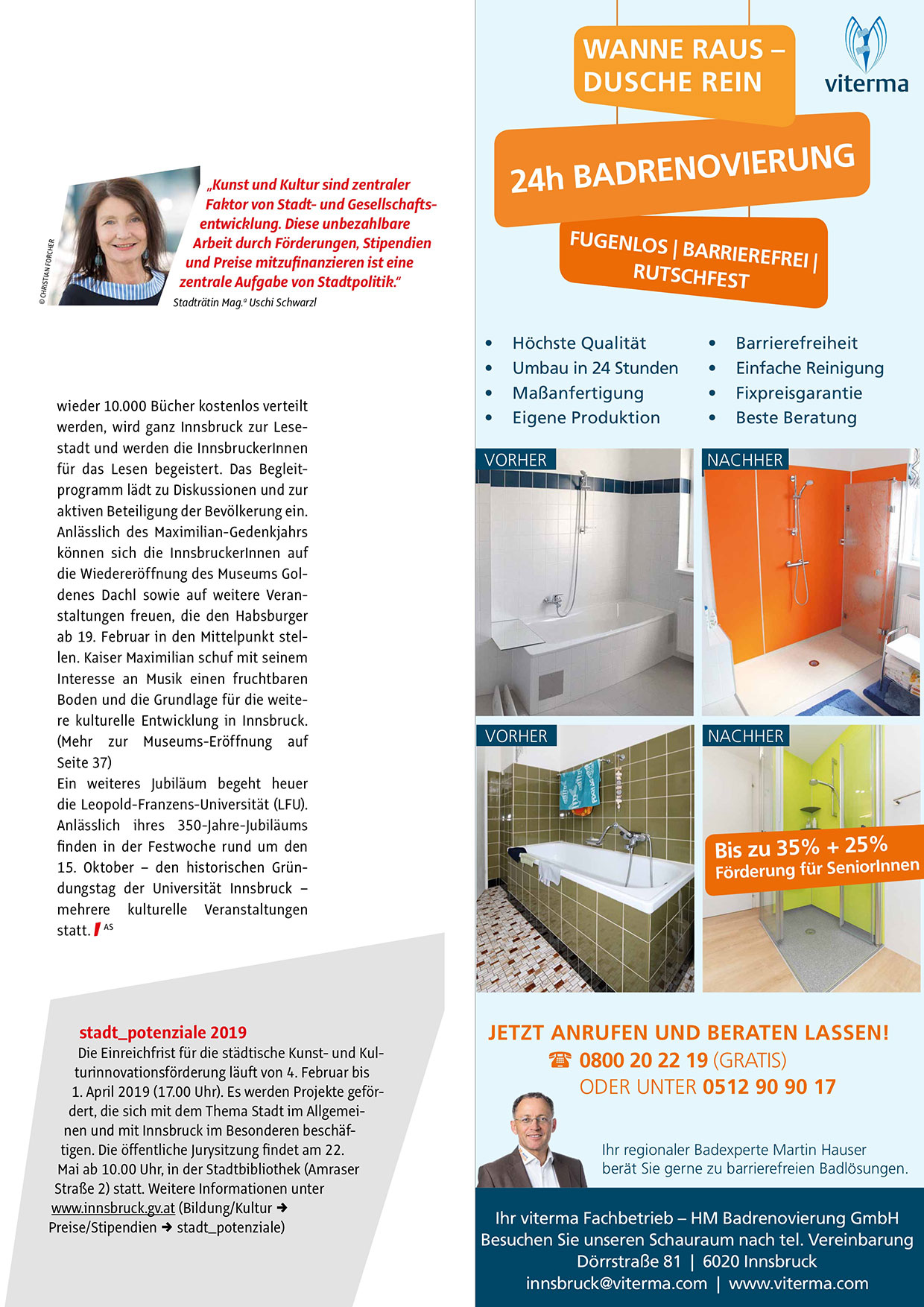 1. April 2019 (17.00 Uhr). Es werden Projekte gefördert, die sich mit dem Thema Stadt im Allgemeinen und mit Innsbruck im Besonderen beschäftigen. Die öffentliche Jurysitzung findet am 22.
