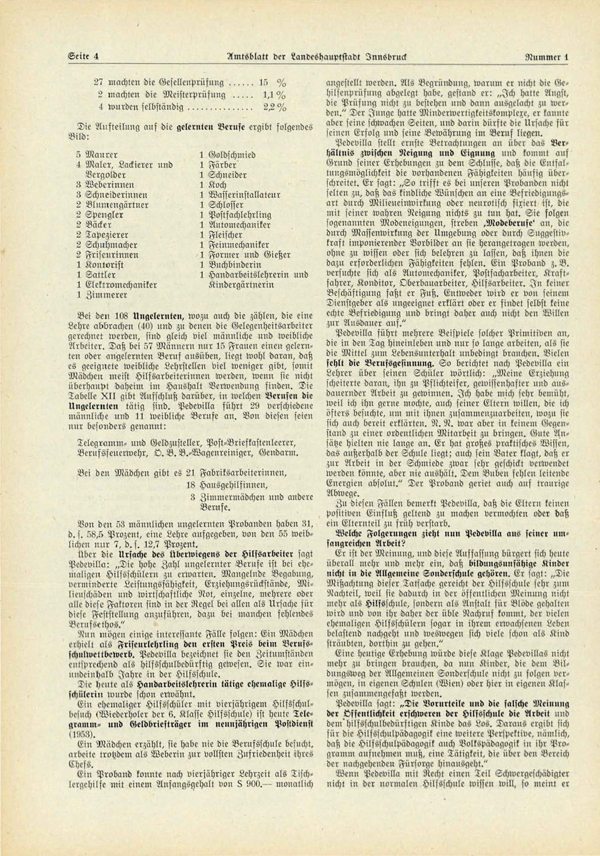 Pedevilla: „ T i e hohe Zahl ungelernter Berufe ist bei ehemaligen Hilfsschülcrn zu erwarten. Mangelnde Begabung,