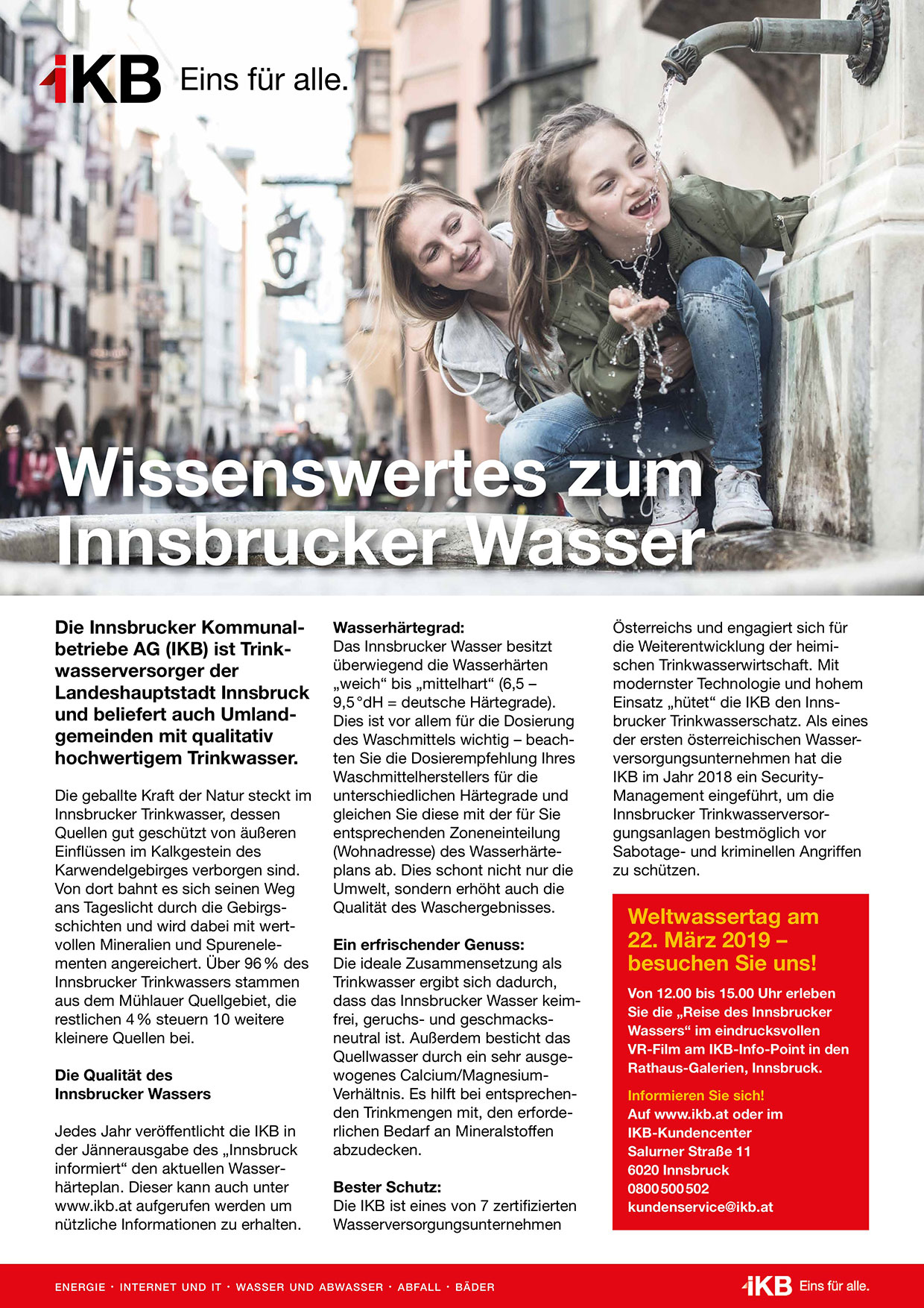 dass das Innsbrucker Wasser keimfrei, geruchs- und geschmacksneutral ist. Außerdem besticht das