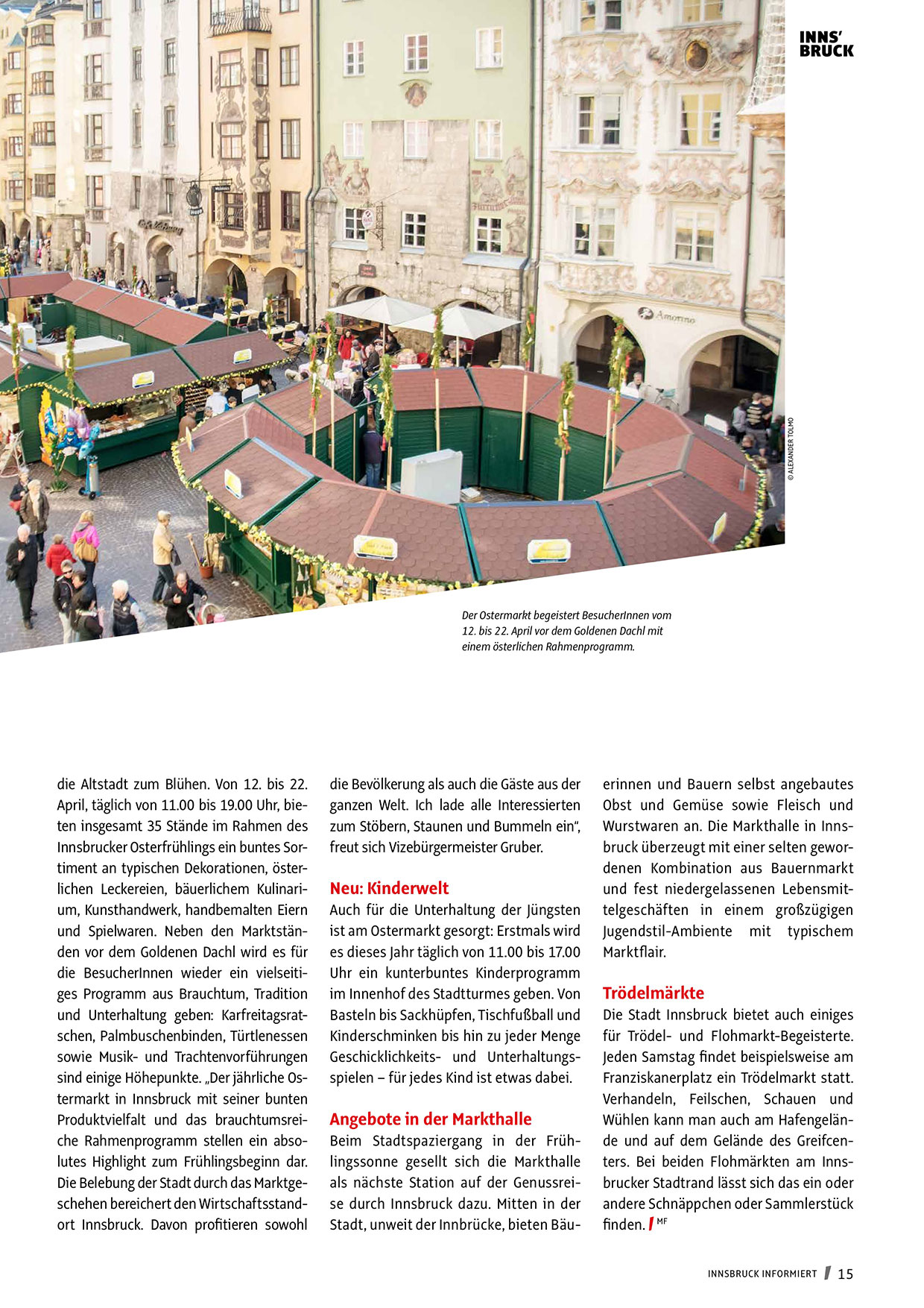 sind einige Höhepunkte. „Der jährliche Ostermarkt in Innsbruck mit seiner bunten