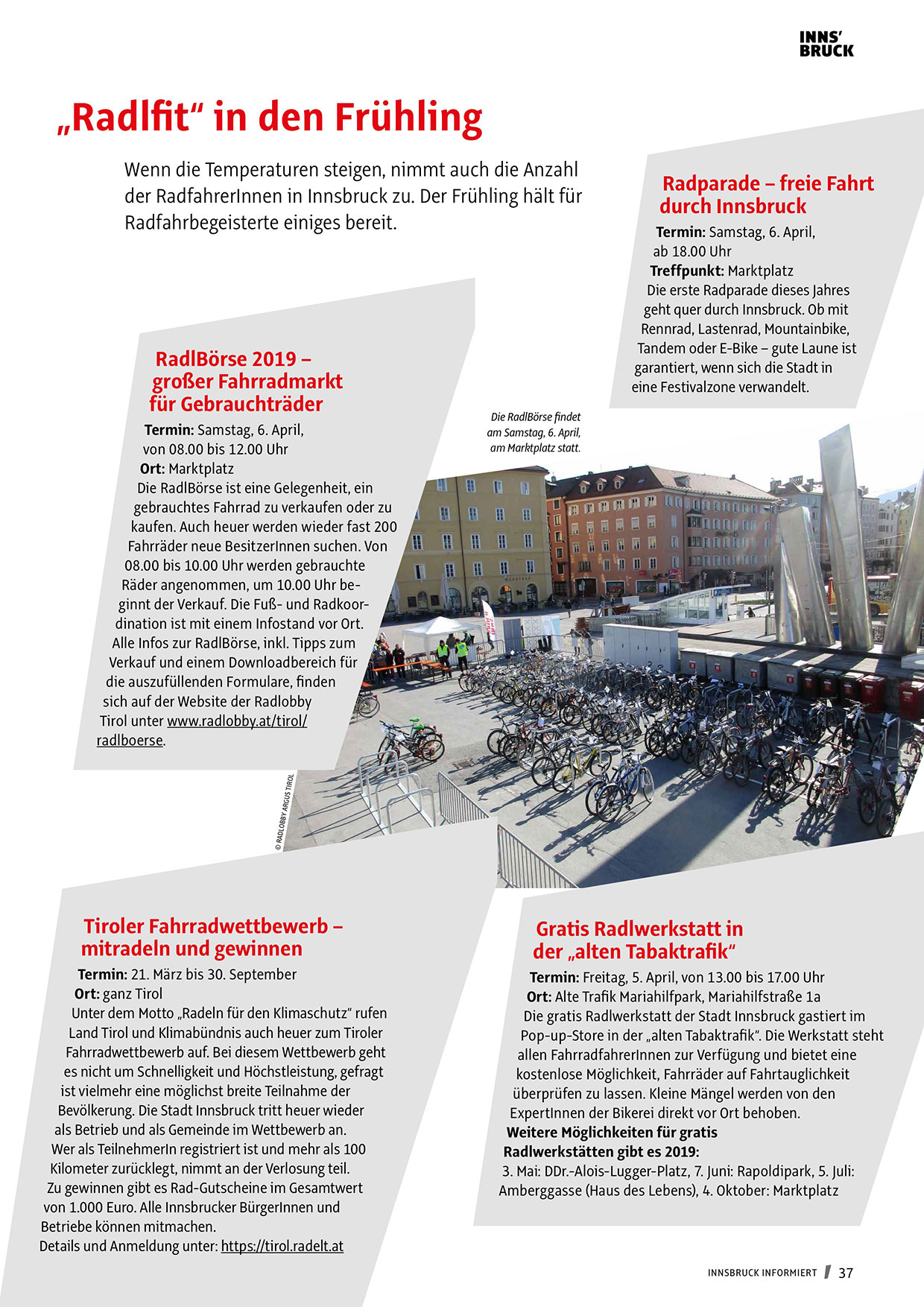 der RadfahrerInnen in Innsbruck zu. Der Frühling hält für