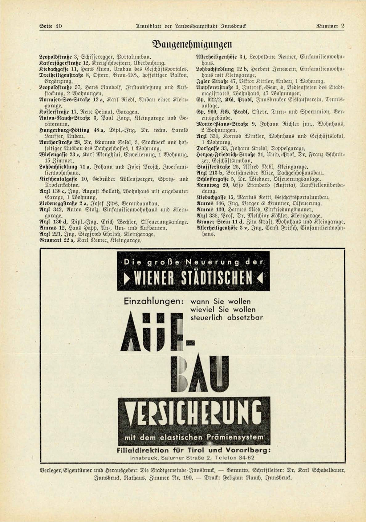 Verleger, Eigentümer und Herausgeber: Die Stadtgemeinde Iunöbrucl. -^ Verantw. Schriftleiter: Dr. Karl Schadelbaner,