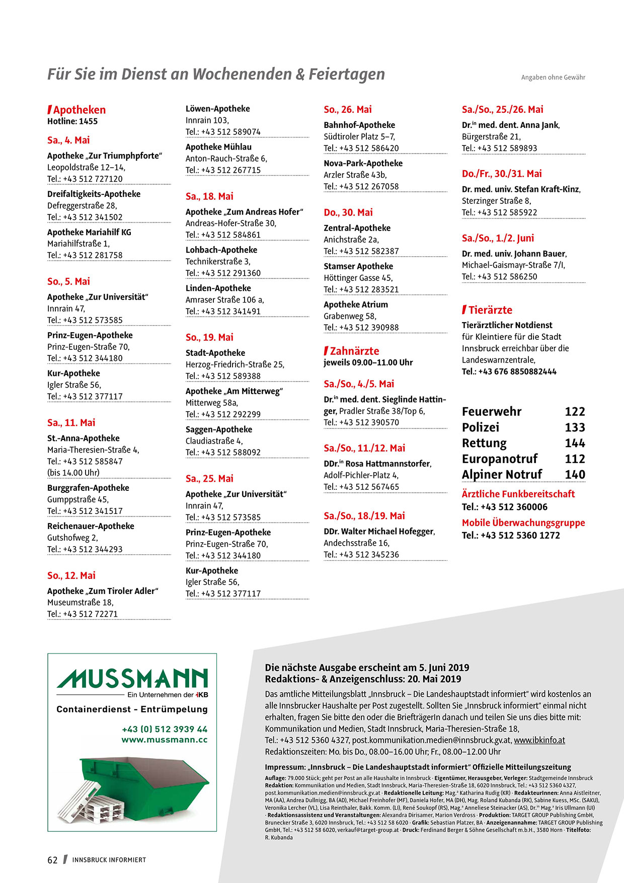 Impressum: „Innsbruck – Die Landeshauptstadt informiert“ Offizielle Mitteilungszeitung
