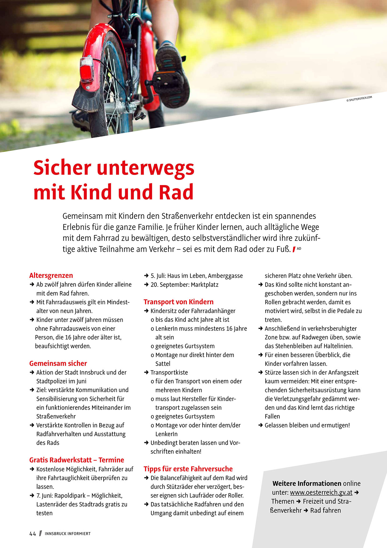 mit dem Fahrrad zu bewältigen, desto selbstverständlicher wird ihre zukünftige aktive Teilnahme am Verkehr – sei es mit dem Rad oder zu Fuß. AD