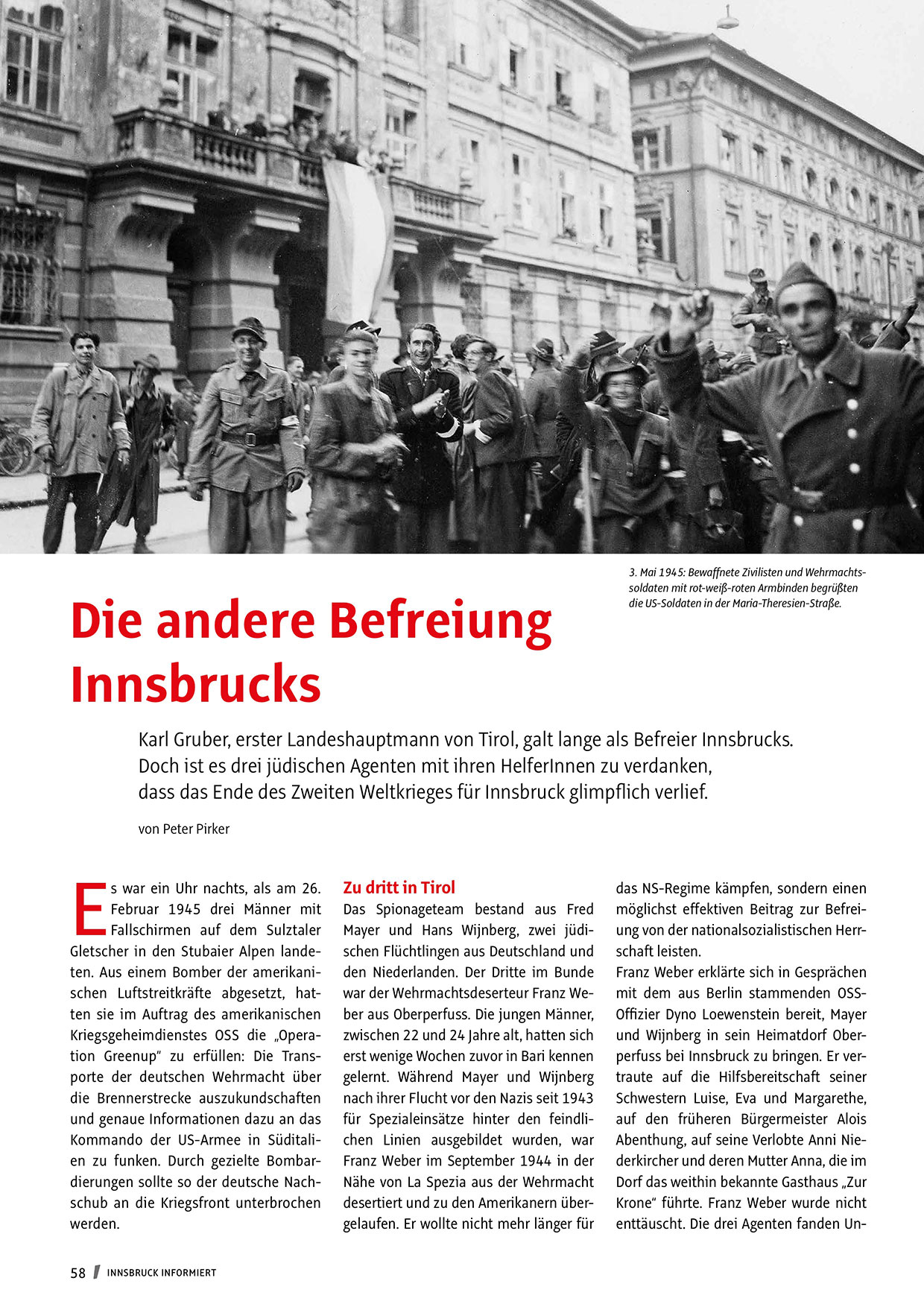 dass das Ende des Zweiten Weltkrieges für Innsbruck glimpflich verlief.