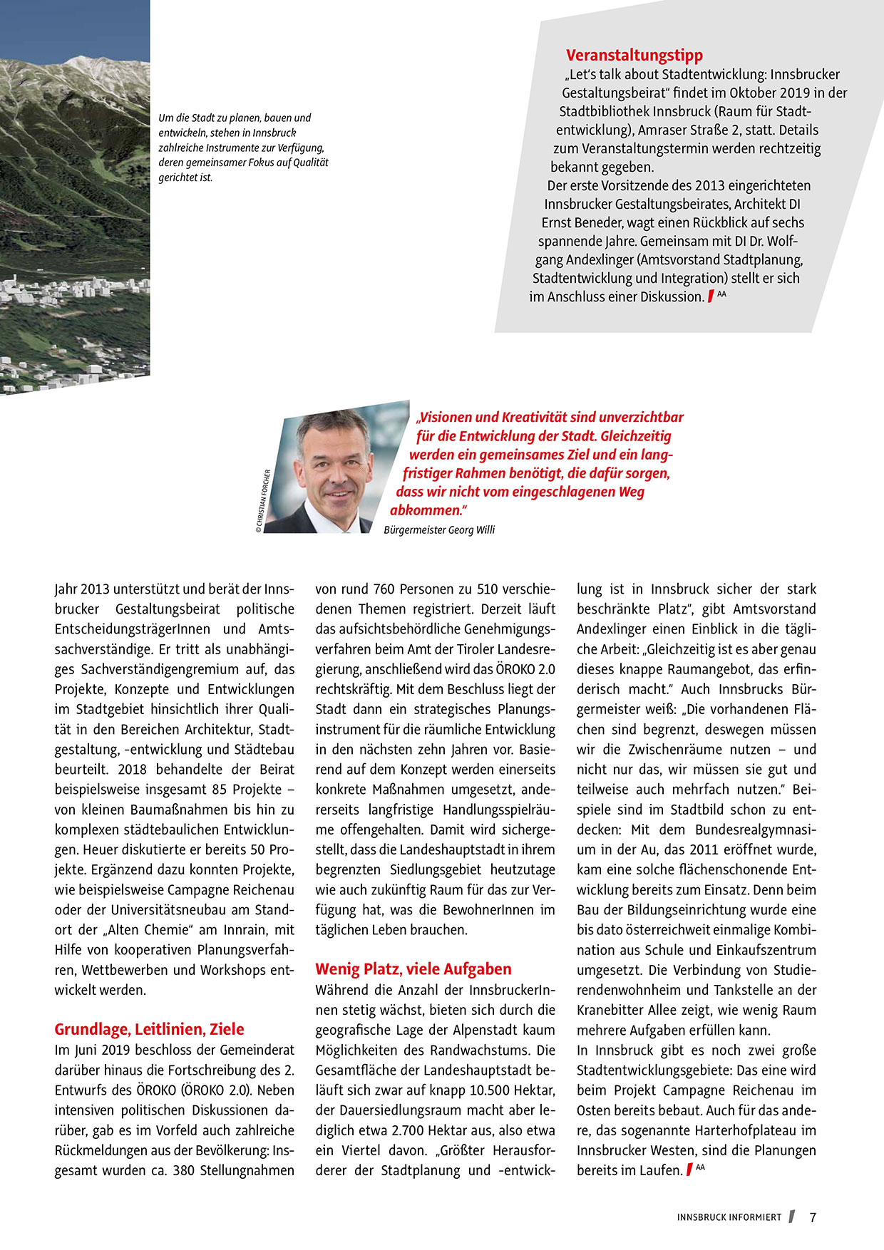 dieses knappe Raumangebot, das erfinderisch macht.“ Auch Innsbrucks Bürgermeister weiß: „Die vorhandenen Flächen sind begrenzt, deswegen müssen