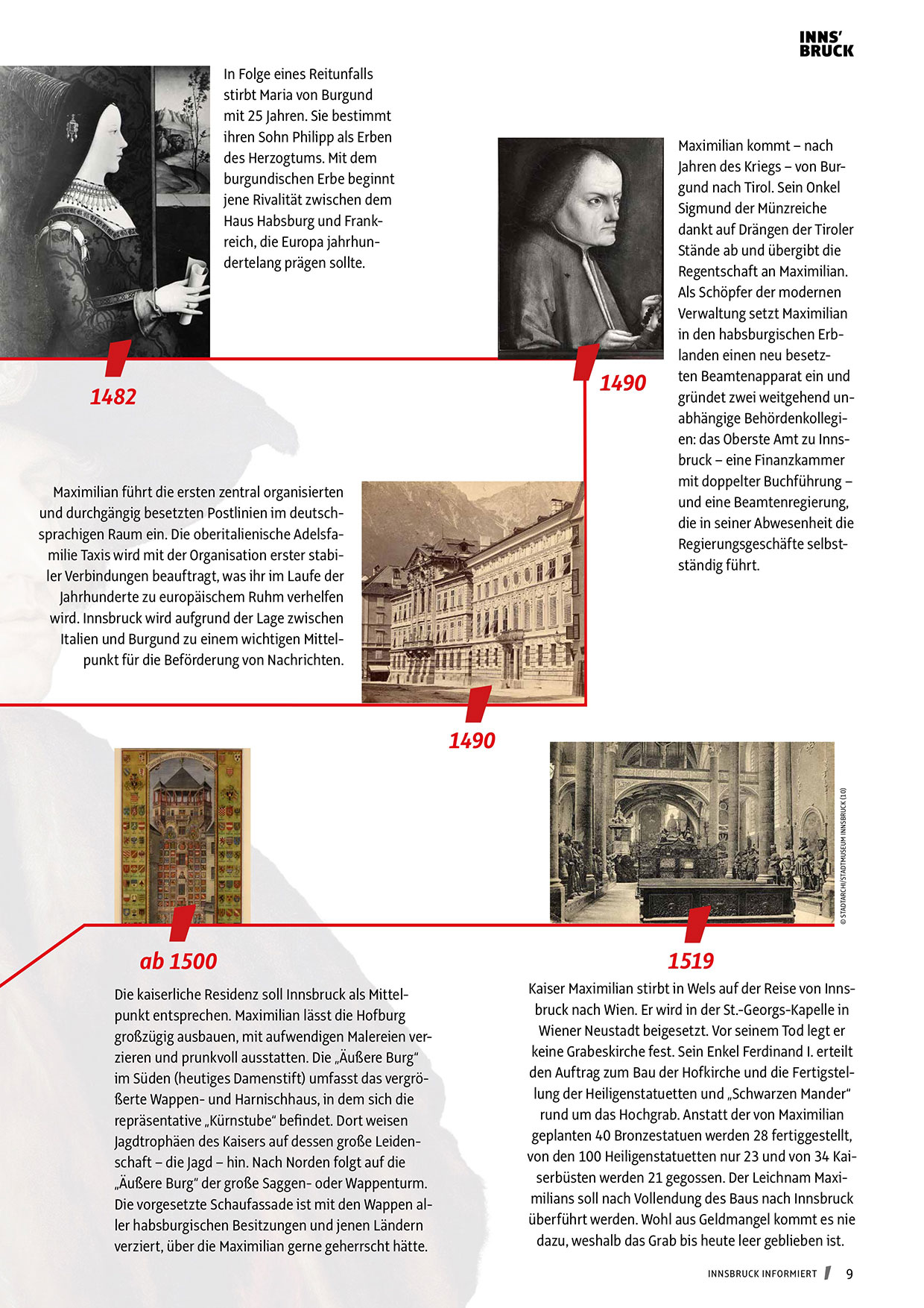Die kaiserliche Residenz soll Innsbruck als Mittelpunkt entsprechen. Maximilian lässt die Hofburg