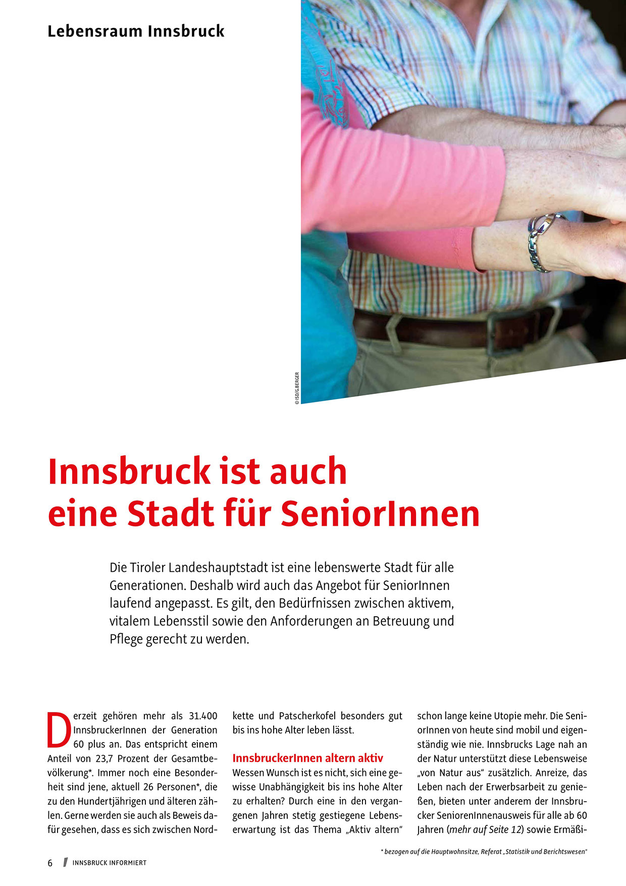 schon lange keine Utopie mehr. Die SeniorInnen von heute sind mobil und eigenständig wie nie. Innsbrucks Lage nah an