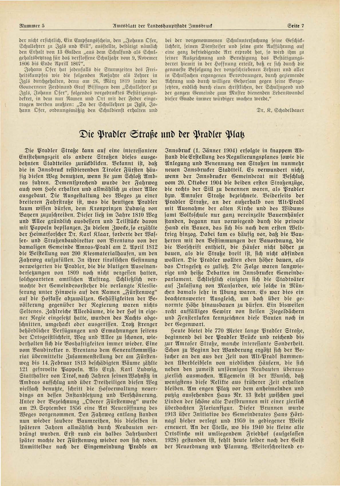breitereu Fahrstraße ist, was die heutigen Pradler