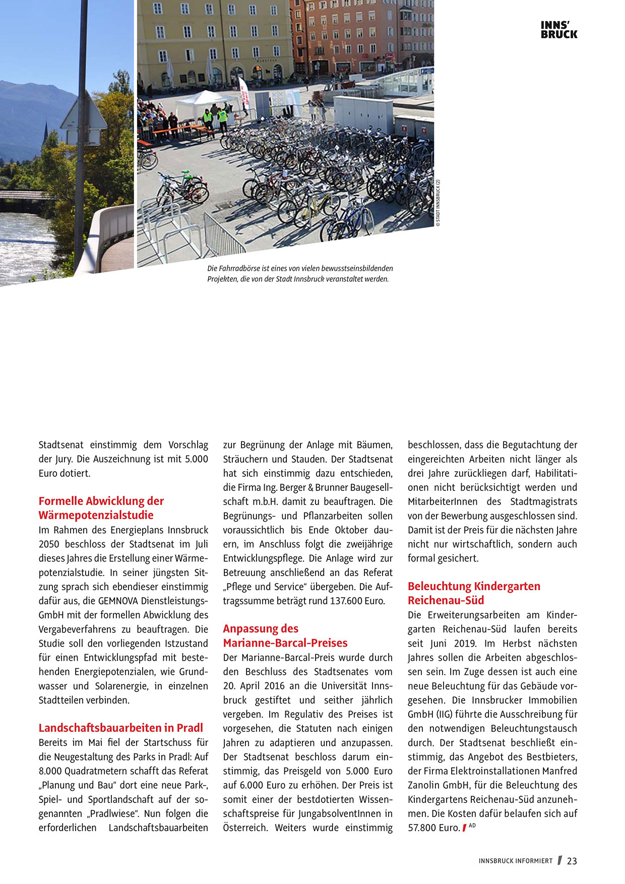 Projekten, die von der Stadt Innsbruck veranstaltet werden.