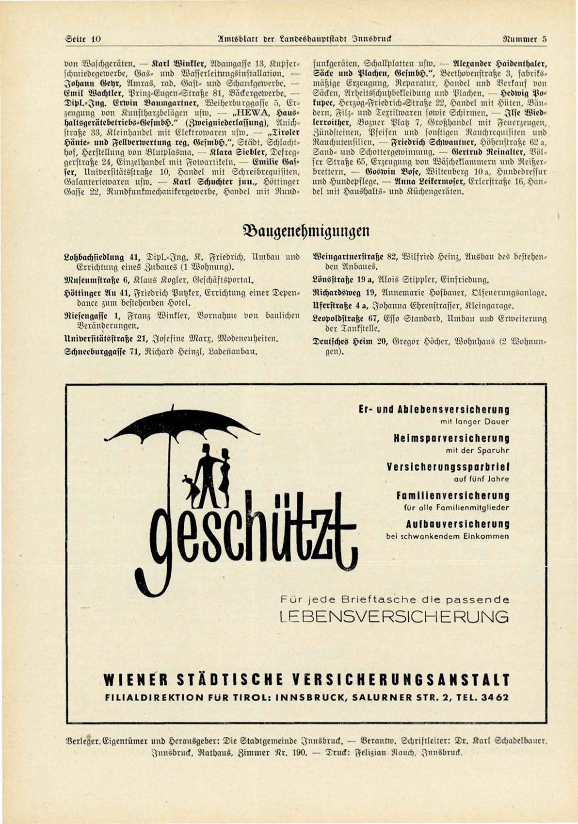 Verleger,Eigentümer uud Herausgeber: Die Stadtgemeiudc "^unsbrun". - Vcranlw. Schrisllcitcr: T r . Karl Schadelbaiici,