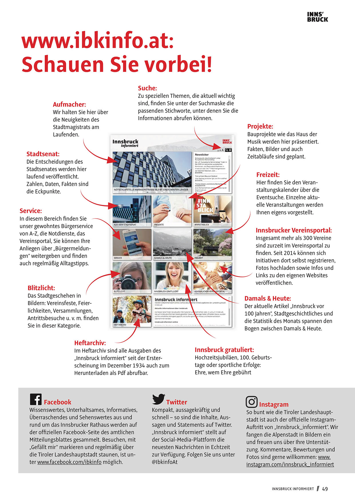die Tiroler Landeshauptstadt staunen, ist unter www.facebook.com/ibkinfo möglich.