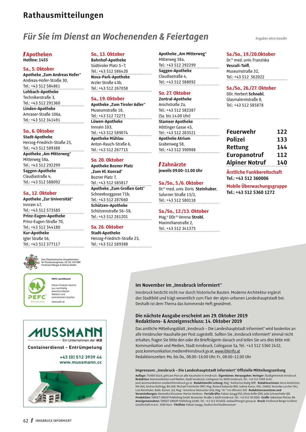 Impressum: „Innsbruck – Die Landeshauptstadt informiert“ Offizielle Mitteilungszeitung