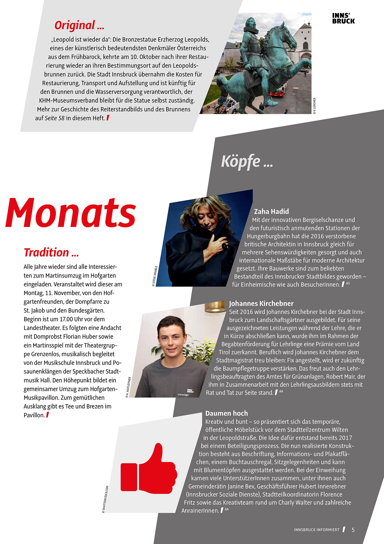 aus dem Frühbarock, kehrte am 10. Oktober nach ihrer Restaurierung wieder an ihren Bestimmungsort auf den Leopoldsbrunnen zurück. Die Stadt Innsbruck übernahm die Kosten für