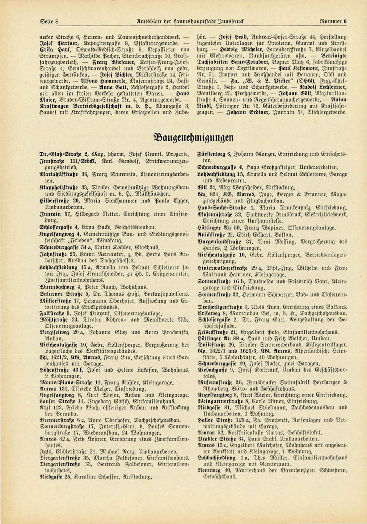 Nindl, Höttinger An 76, Güterbeförderung mit Kraflfahrzeugcu. - Iohaun Erdtner, Innrain 54, Tischlergcwcrbc.