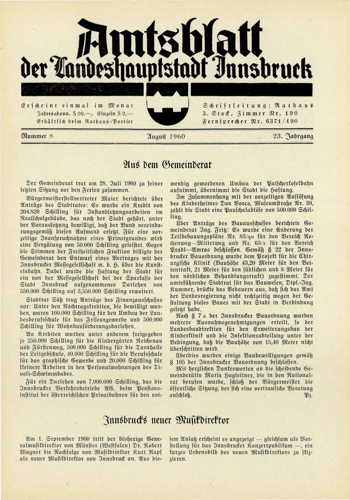 Der Gemeinderat trat am 28. J u l i 1960 zu feiner