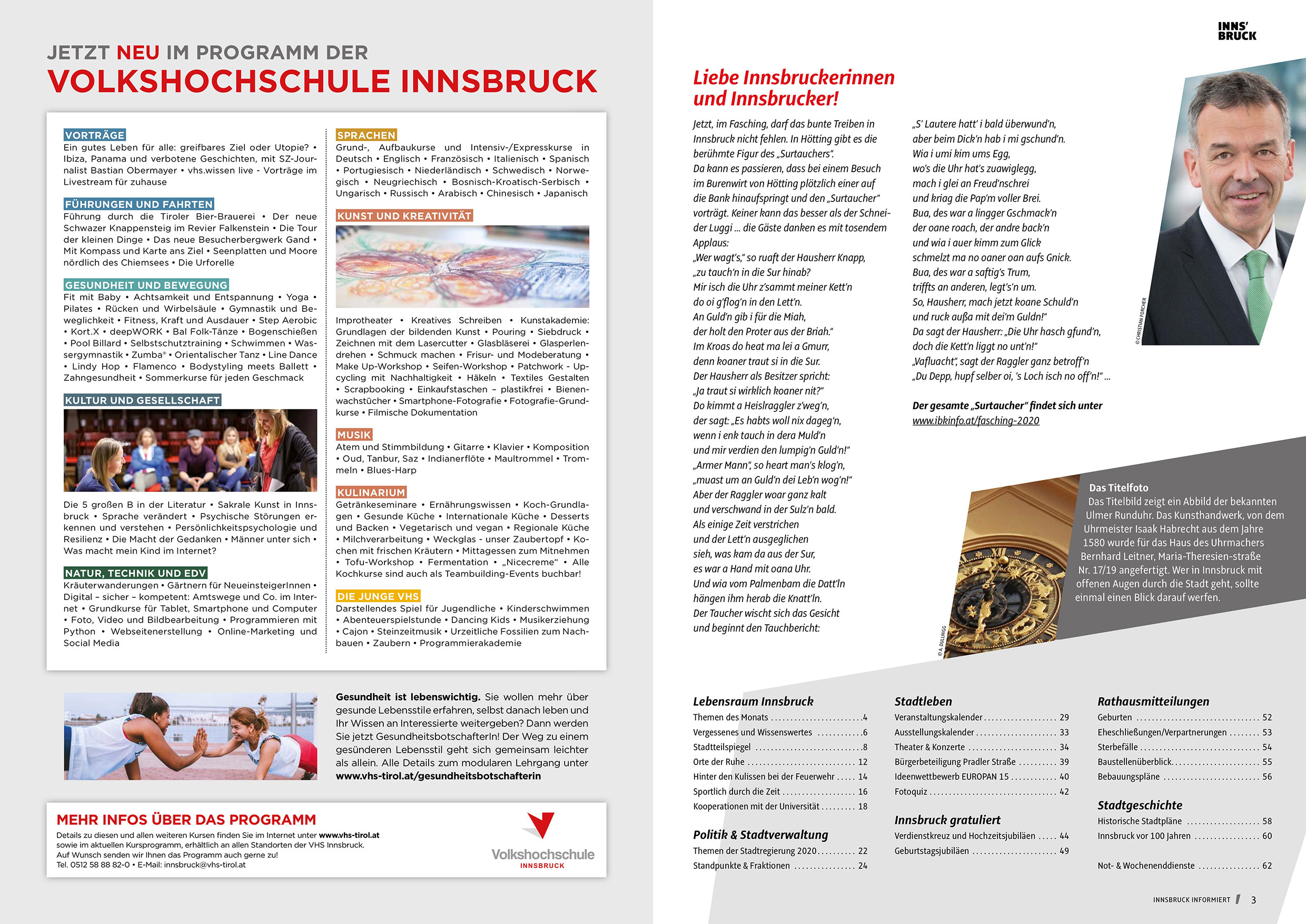 sowie im aktuellen Kursprogramm, erhältlich an allen Standorten der VHS Innsbruck.