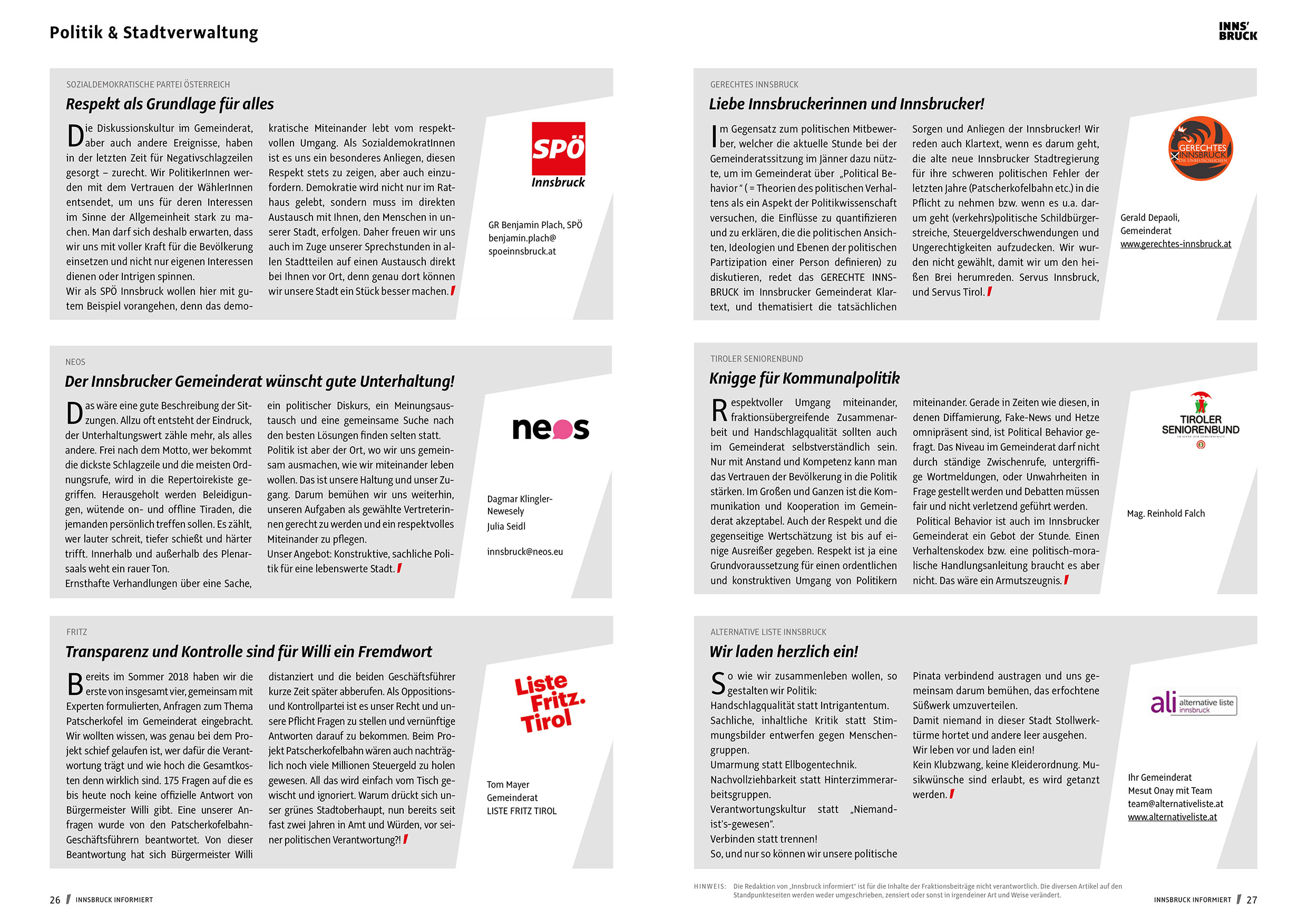 H I N W EI S : Die Redaktion von „Innsbruck informiert“ ist für die Inhalte der Fraktionsbeiträge nicht verantwortlich. Die diversen Artikel auf den