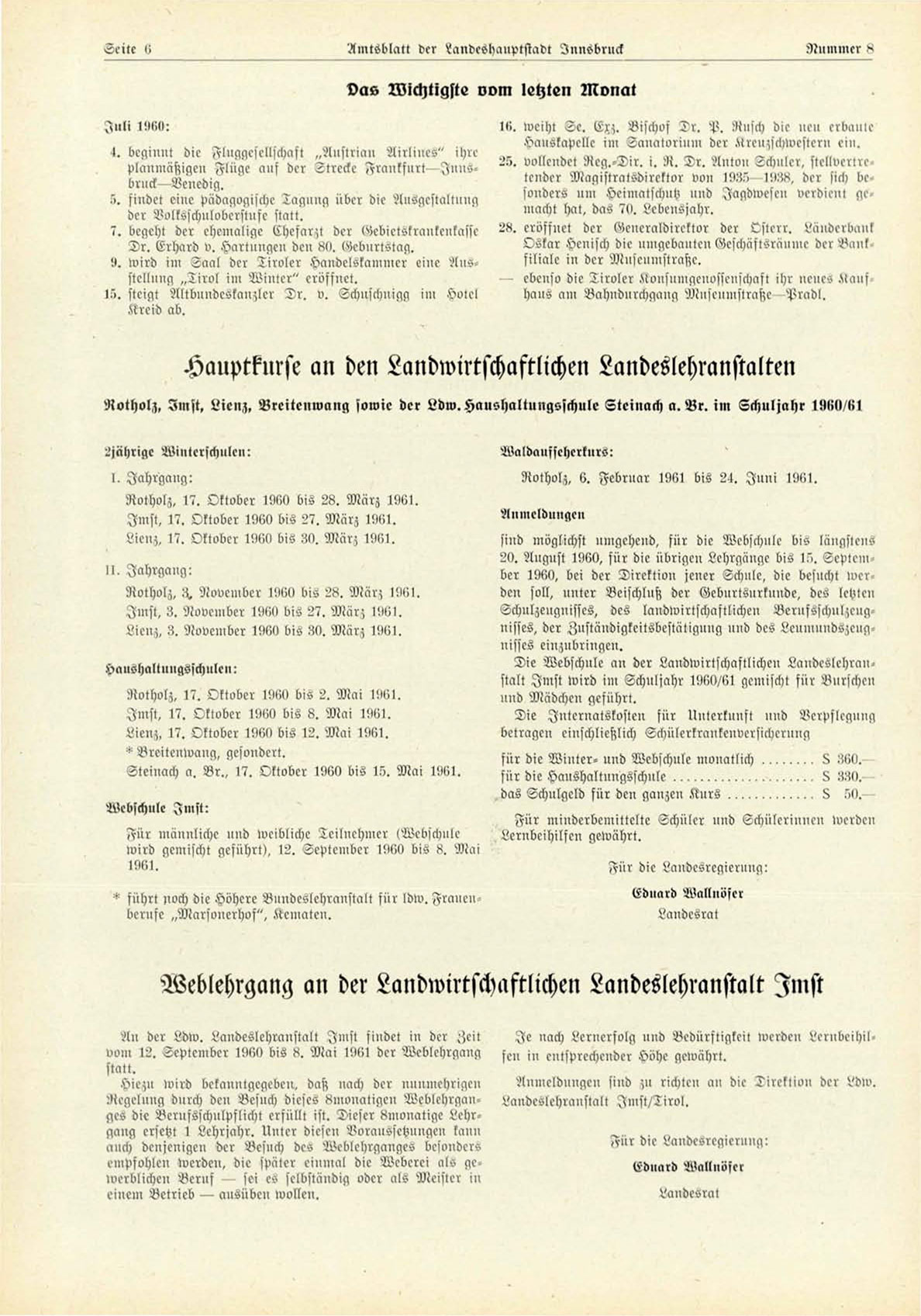 Imst, 17. Oktober 1960 bis 8. Mai 196!.