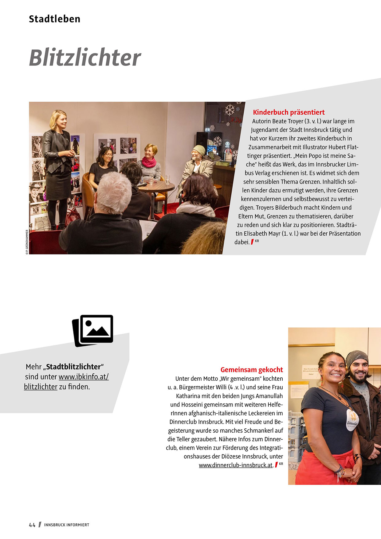 die Teller gezaubert. Nähere Infos zum Dinnerclub, einem Verein zur Förderung des Integrationshauses der Diözese Innsbruck, unter