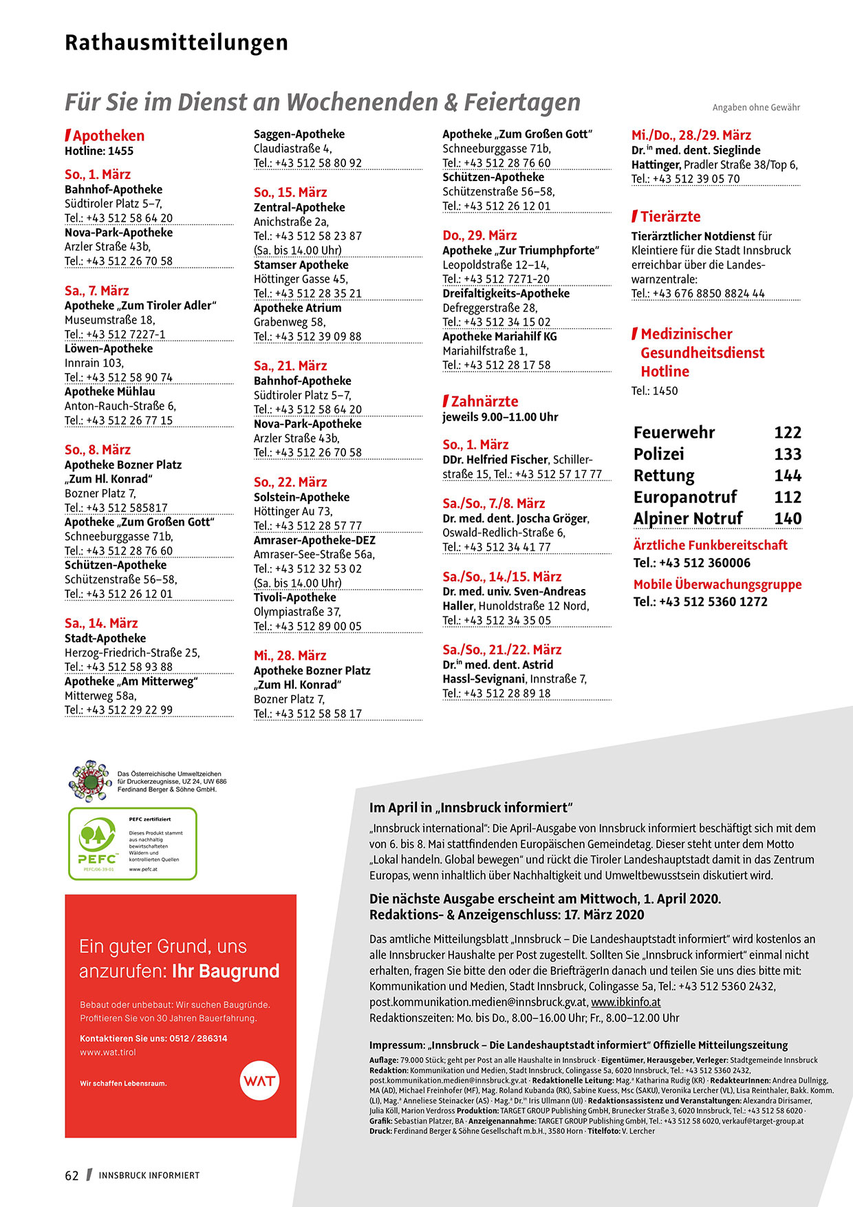 Impressum: „Innsbruck – Die Landeshauptstadt informiert“ Offizielle Mitteilungszeitung