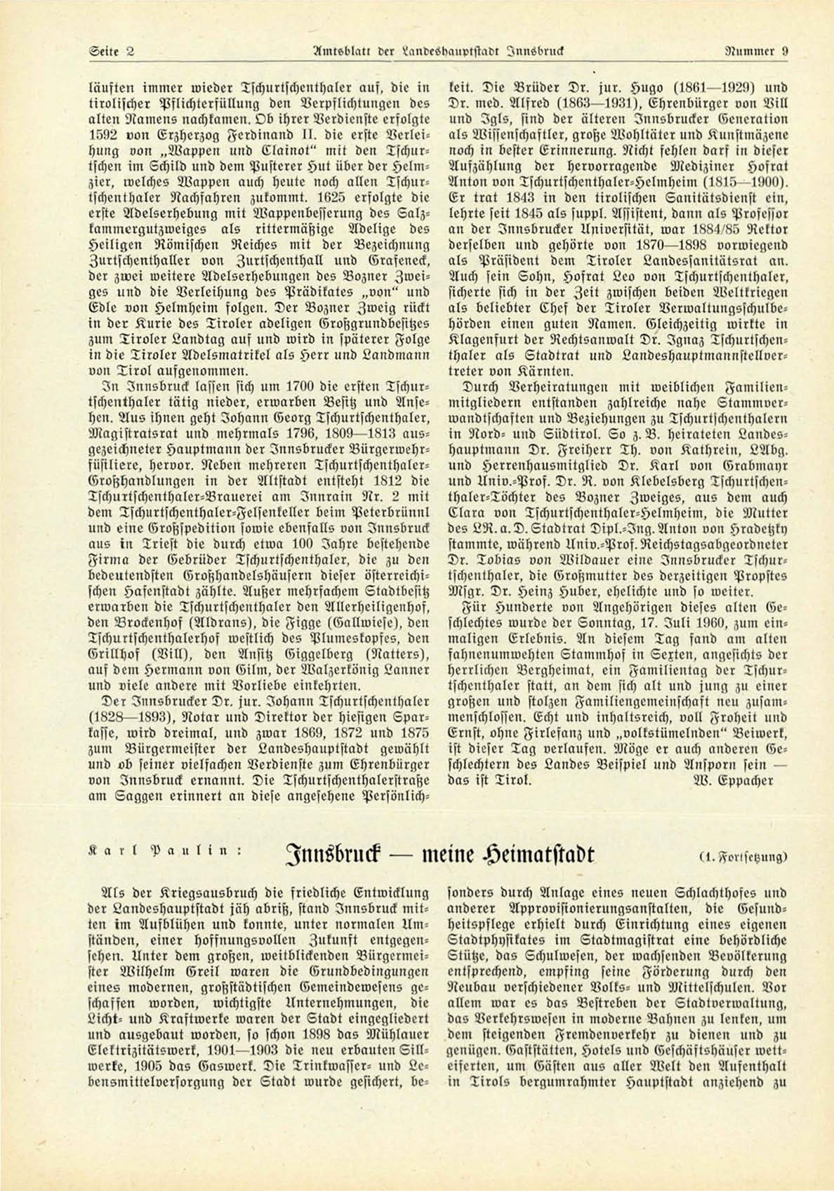 von Innsbruck ernannt. Die Tschurtschenthalerstraße