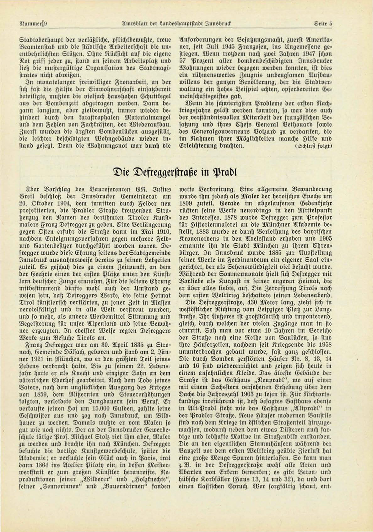 projektierten, die Pradler Straße kreuzenden Straßenzug den Namen des berühmten Tiroler Kunstmalers Franz Defregger zu geben. Eine Verlängerung