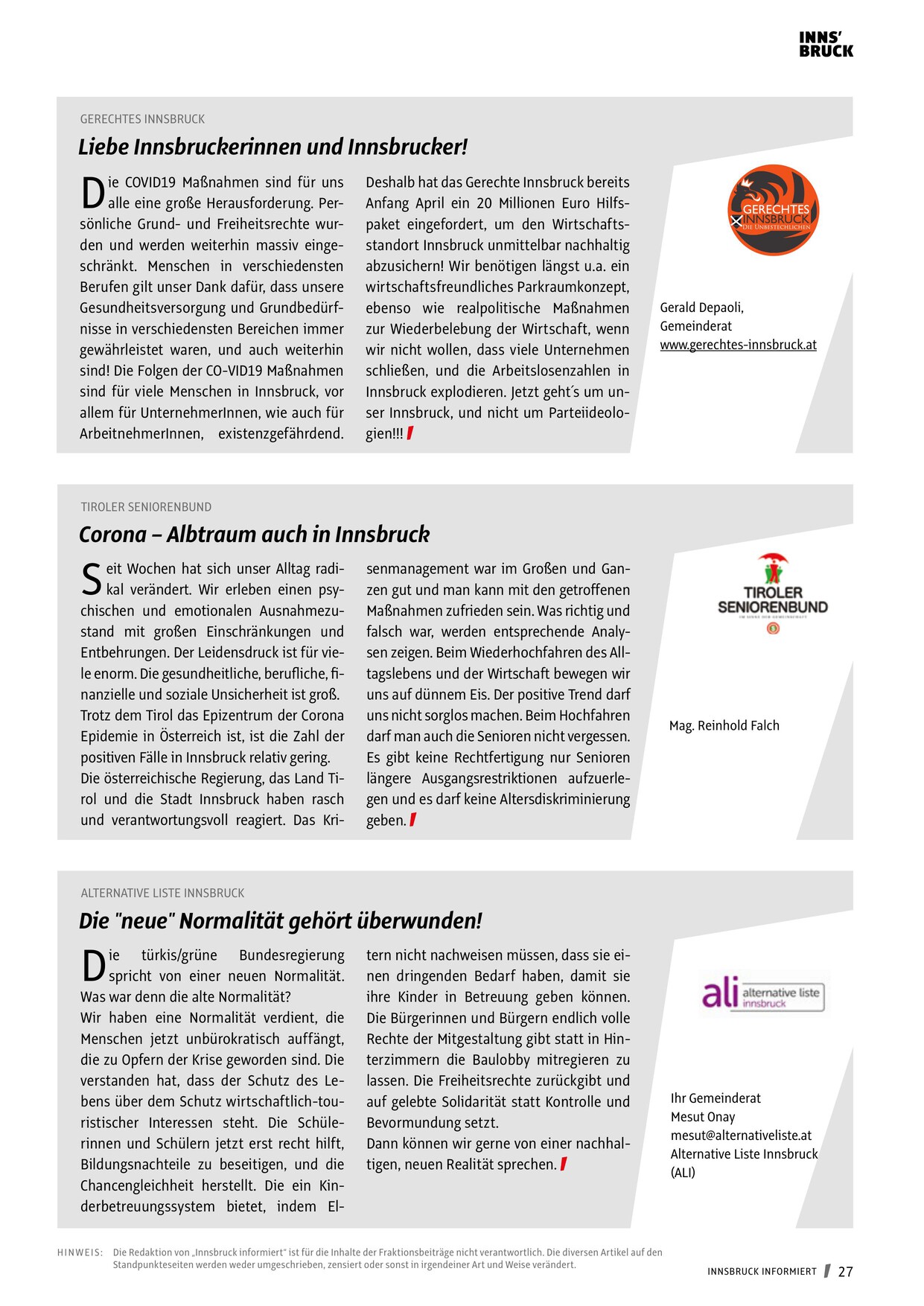 H I N W EI S : Die Redaktion von „Innsbruck informiert“ ist für die Inhalte der Fraktionsbeiträge nicht verantwortlich. Die diversen Artikel auf den