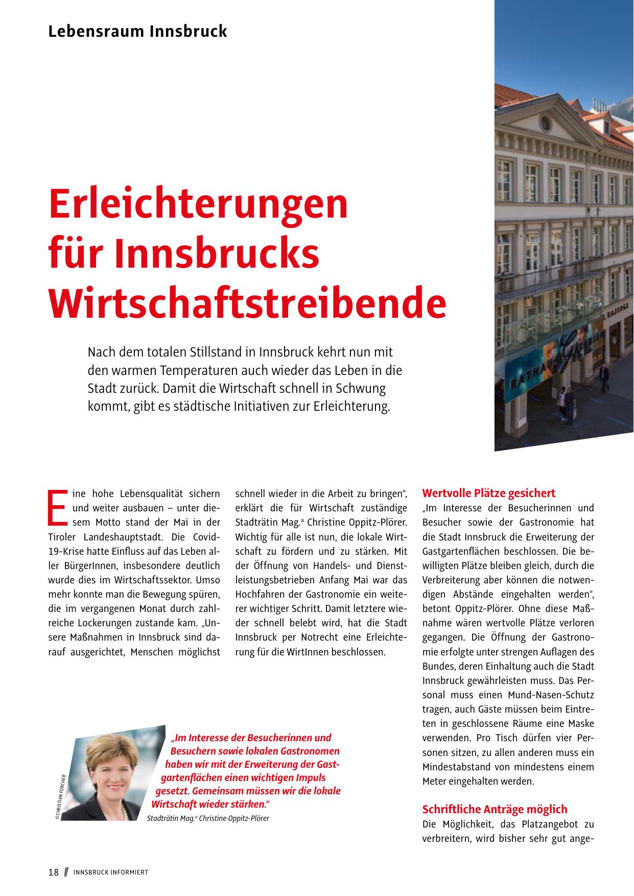 die im vergangenen Monat durch zahlreiche Lockerungen zustande kam. „Unsere Maßnahmen in Innsbruck sind darauf ausgerichtet, Menschen möglichst