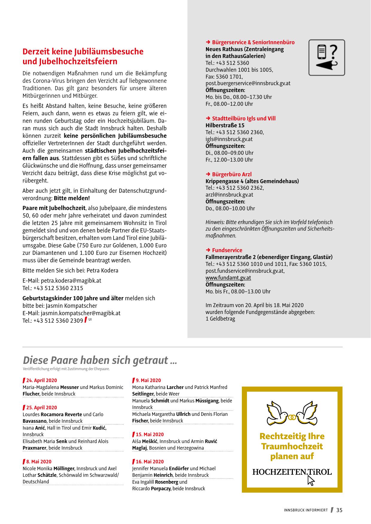 gemeldet sind und von denen beide Partner die EU-Staatsbürgerschaft besitzen, erhalten vom Land Tirol eine Jubiläumsgabe. Diese Gabe (750 Euro zur Goldenen, 1.000 Euro