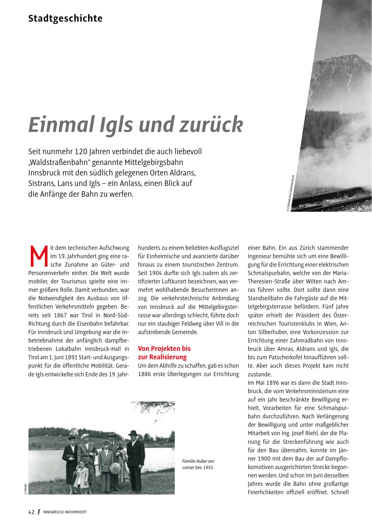 Tirol am 1. Juni 1891 Start- und Ausgangspunkt für die öffentliche Mobilität. Gerade Igls entwickelte sich Ende des 19. Jahr-