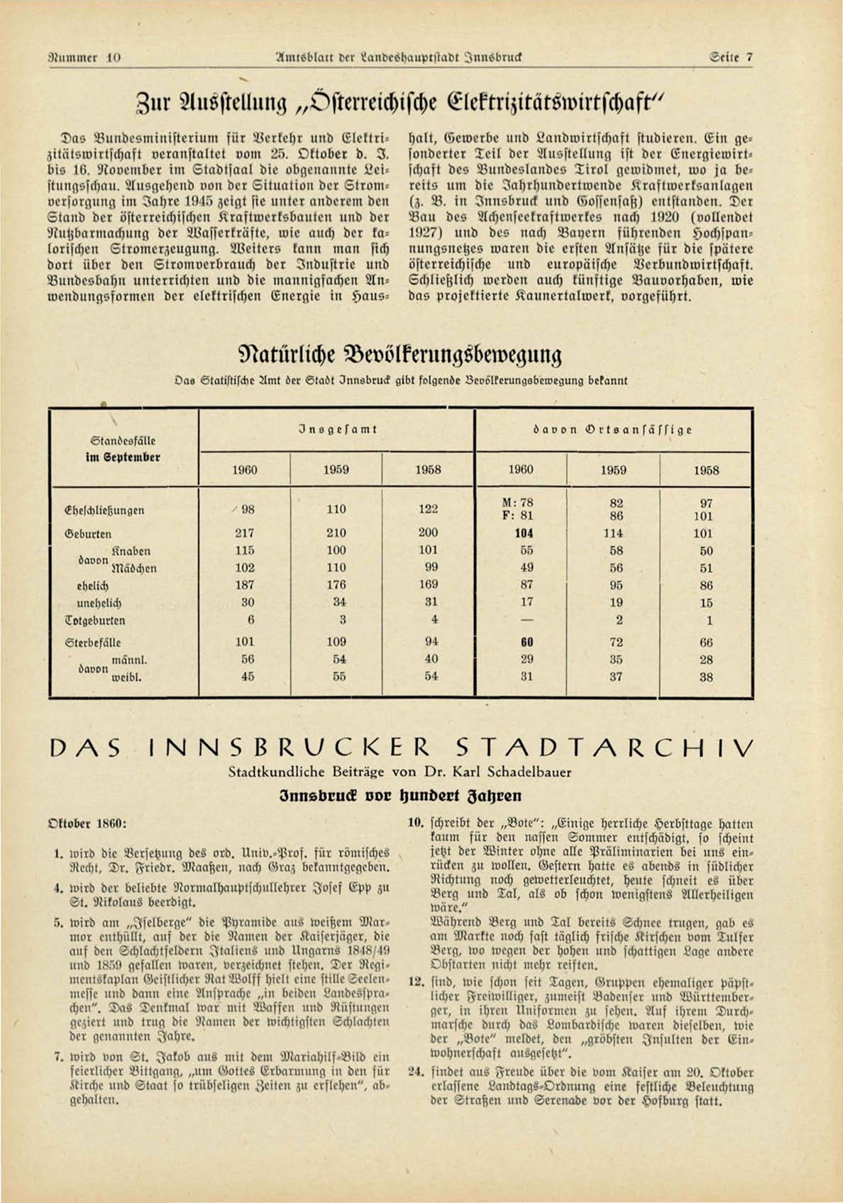Oas Statistiscke Amt ^cr Sta^t Unnokruck gibt folgende Zcoölkerunqgbcwegung bekannt