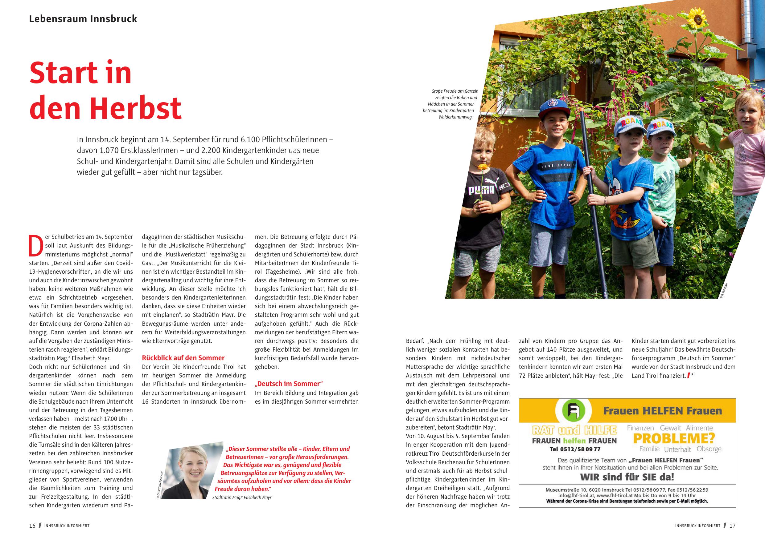 In Innsbruck beginnt am 14. September für rund 6.100 PflichtschülerInnen –