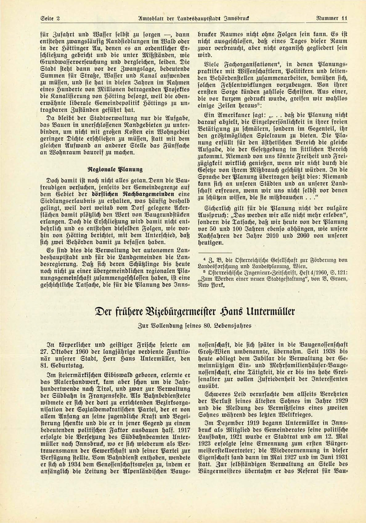 27. Oktober 1960 der langjährige verdiente Funktionär unserer Stadt, Herr Hans Untermüller, den