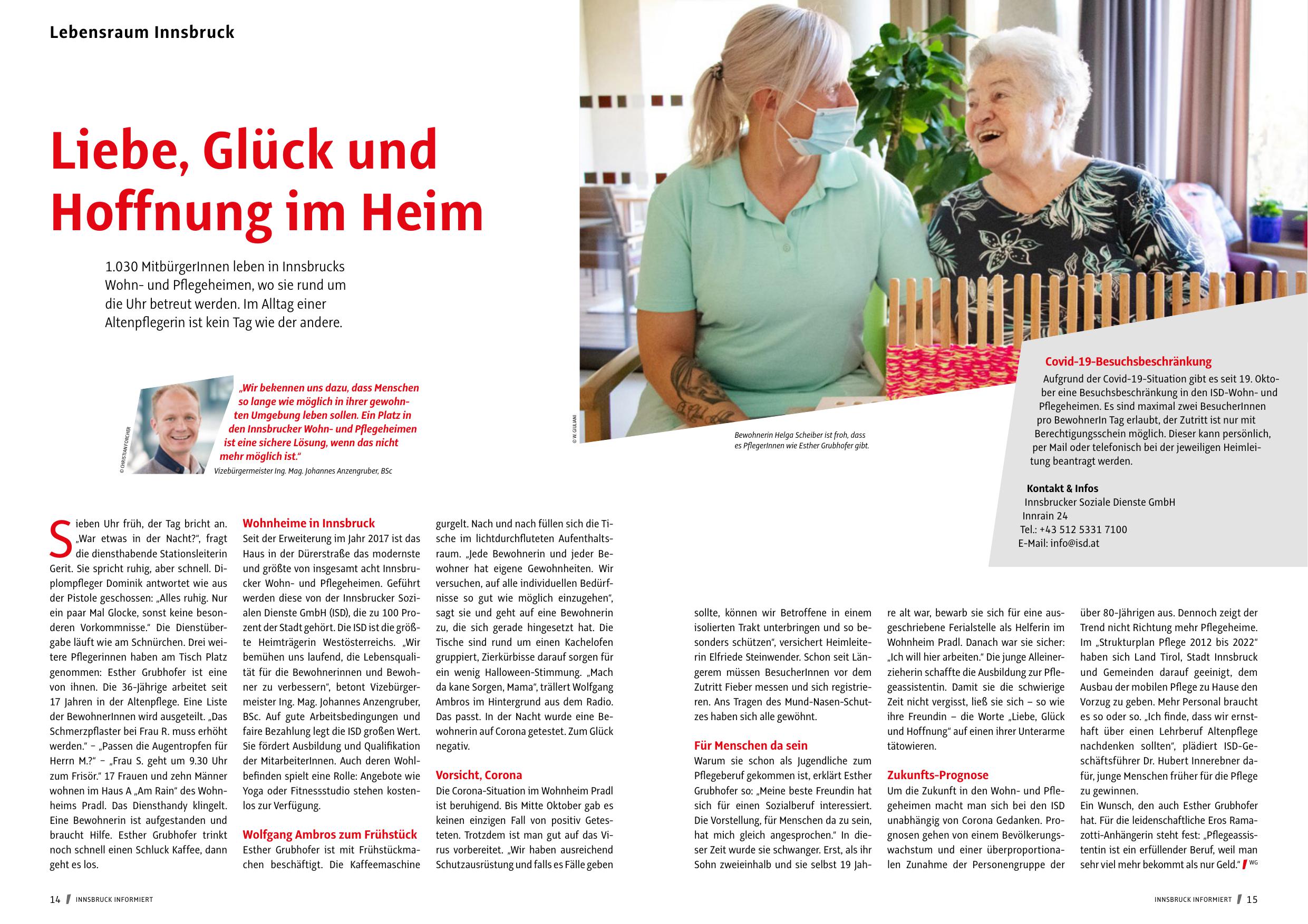 werden diese von der Innsbrucker Sozialen Dienste GmbH (ISD), die zu 100 Prozent der Stadt gehört. Die ISD ist die größte Heimträgerin Westösterreichs. „Wir